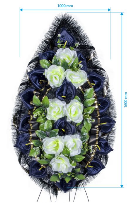 Цей ритуальний вінок виконаний у формі класичного овалу, що надає йому витонченого та стриманого вигляду, ідеального для вшанування пам'яті.
